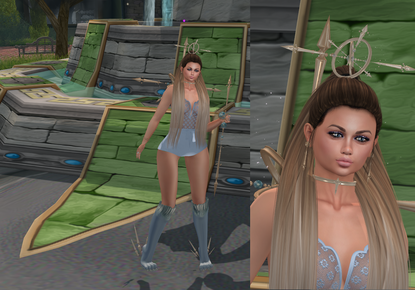 This fatpack set includes several great accessories to mix and match. There is also a Dark version which I posted about here. Shown here are the ankle halos. band bracelets, bauble halo, choker, crown halo, floaty V.1, glove earrings, orbiter (head), orbiter ( simple rotate), and planetary companion. An exclusive at the Crystal Heart Festival which opens June 30th at 12AM SLT.