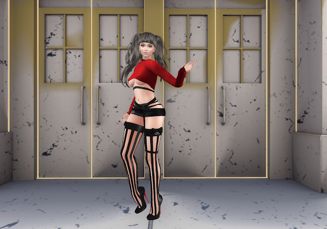 Boots come in sizes for Freya, Hourglass, Isis, Maitreya, Physique. Garter for maitreya, and Freya. Skirt for Maitreya, Freya, Isis, Hourglass, Physique, Pantis for Freya, Hourglass, Isis, Maitreya, Physique. Top for Freya, Hourglass, Isis, Maitreya, Physique. Includes texture HUD. Exclusive at The Darkness August Event August 5 to 31