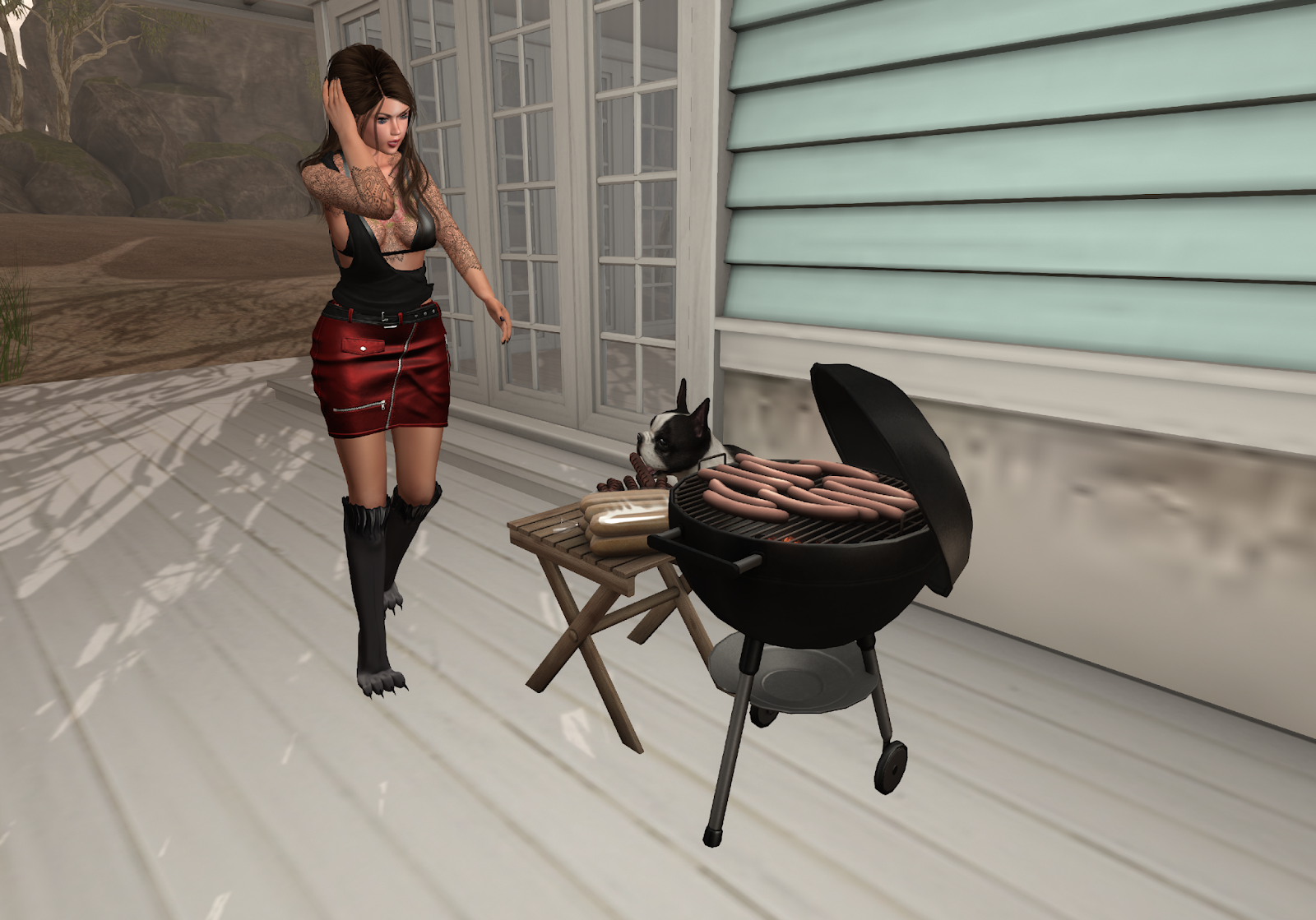 Includes Grill with hot dogs. Static decor with 3 color choices, Hot dog thief boston terrier animated rezzed decor pet that steals and gobbles the hot dogs, 4 coat texture choices. On sale for Fifty Linden Friday 6-28