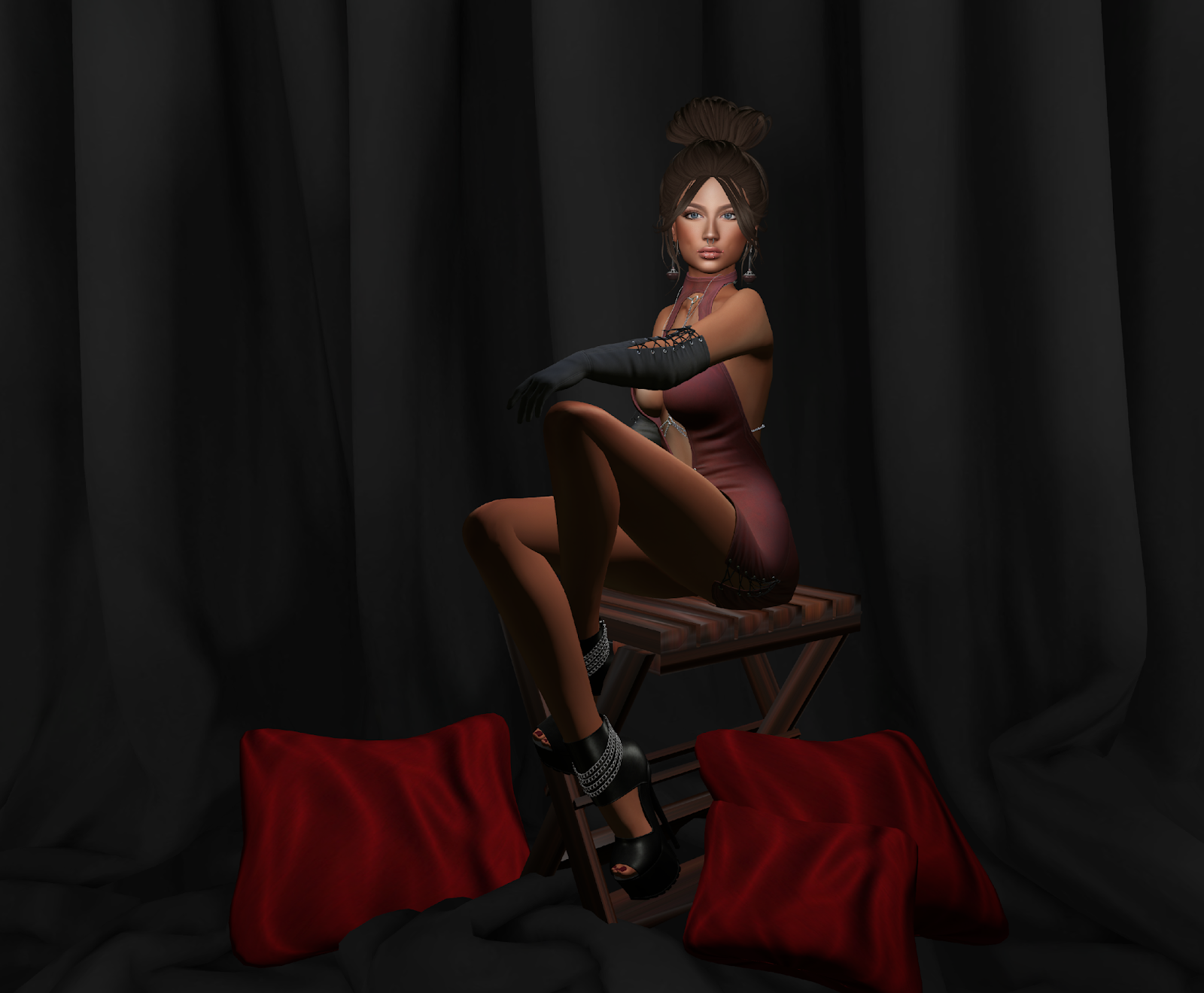 This beautiful gacha collection consists of the following prizes to be won: common dress and sleeves (white, red, pink, grey and brown), rares blacks, harness and chain, and ultra rares, dress FP+ harness and Sleeve FP + hand chain for Maitreya