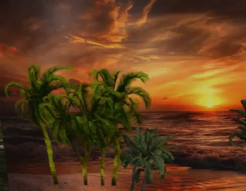 A beautiful sunset at the beach, with just the right amount of a breeze to send those palm trees swayin.