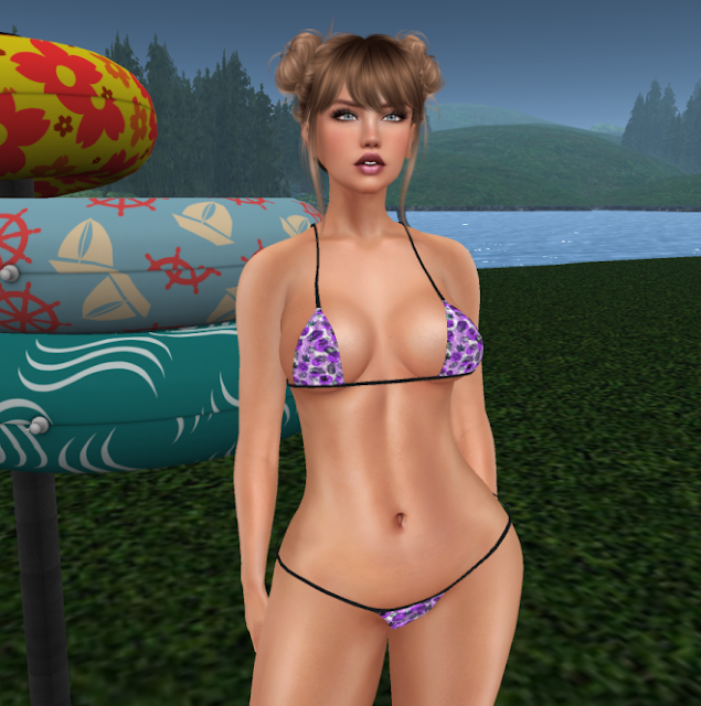 This bikini could be yours if you can find the hunt item :) This is Tropical Spring Bikini.  It's already cute enough, right?  Well guess what!  This comes with a 10 color change hud!  Me, I liked the purple the best.  It comes in Belleza Isis, Freya, Venus, Maitreya, Slink Hourglass and Slink Physique.